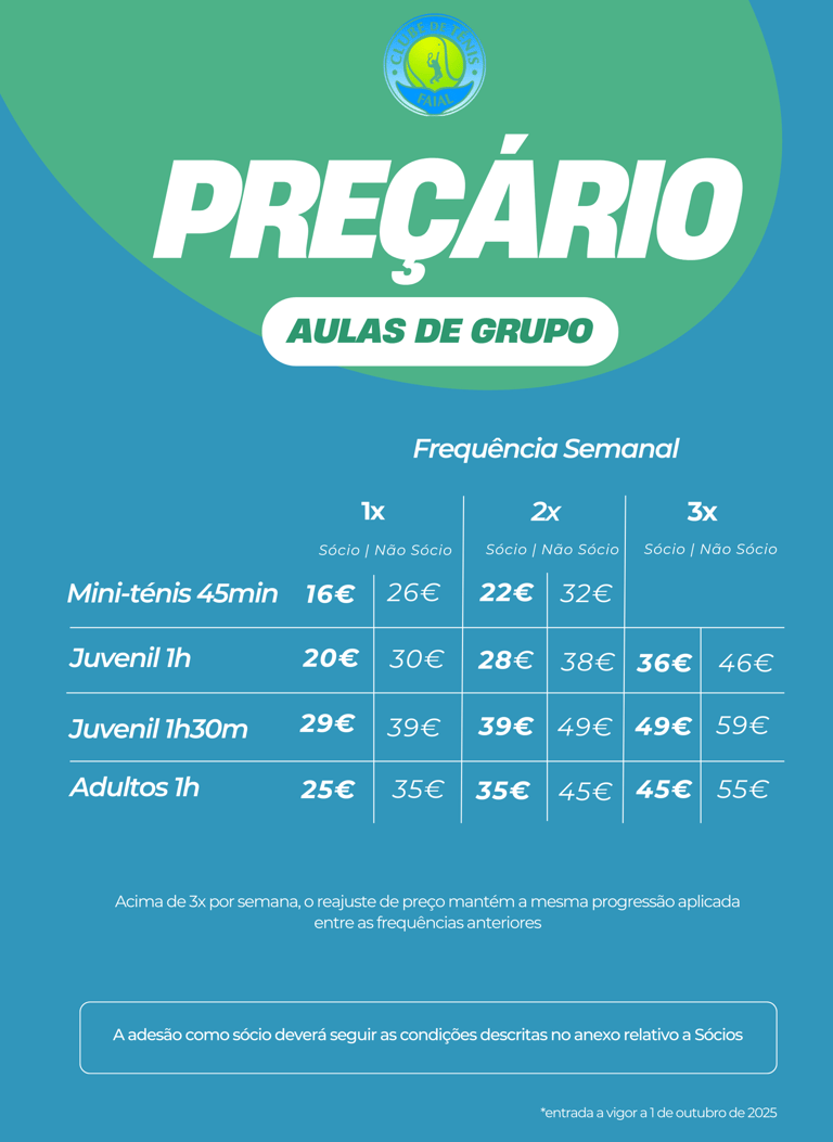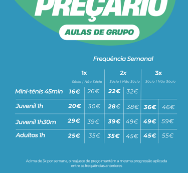 Preçário Aulas de Grupo